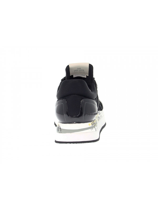 Sneaker aus Leder und Lackleder, Farbe schwarz Modell: LIZ mit Spitze mit logo, Gummi-Sohle.