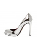 Pump in laminate, colour silver open toe with logo, hide sole.
