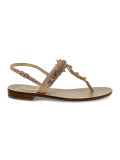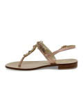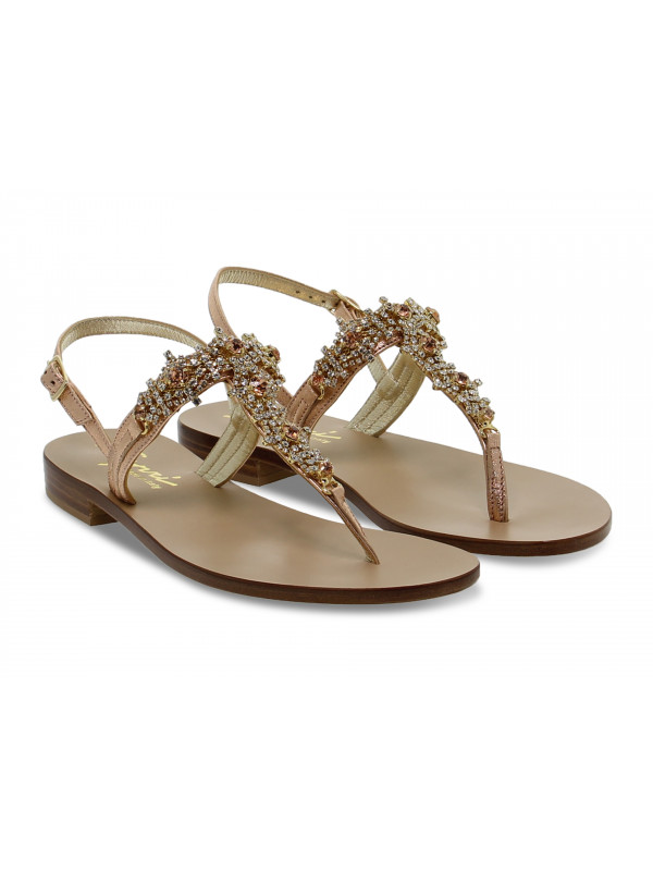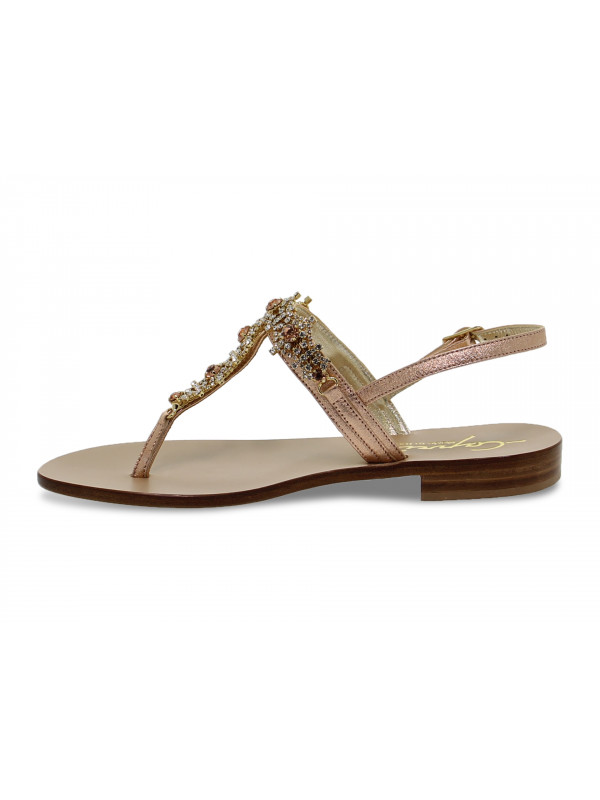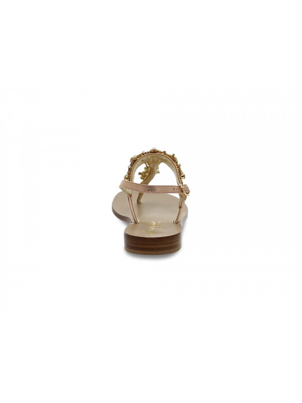 Flat sandals Capri in laminate and crystal, colour rose and gold, Model: POSITANO flip flops with strap with buckle with decorative stitching with ornamental accessory with strass, hide sole.