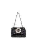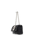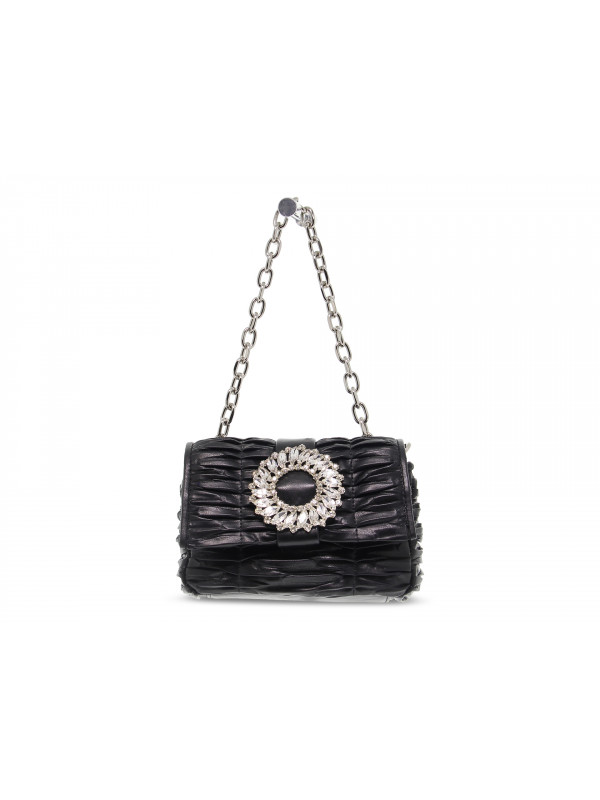 Handbag Ermanno Scervino in faux leather, colour black, Model: SMALL FLAP BAG IOLE with button with chain with ornamental accessory with strass with logo.