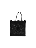 Tote bag Ermanno Scervino in lace and sequins, colour black, Model: VERTICAL SHOPPER FATIN with decoration with ornamental accessory with logo.