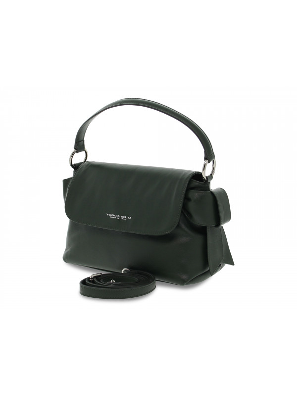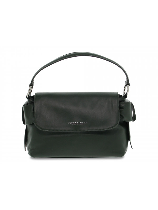 Bolso de mano Tosca Blu de piel, color verde, Modelo: BORSA CON PATTINA SOTTOBOSCO con cerniera con botón con accessorio ornamental con lazo decorativo con doble banda con decoración con logo.