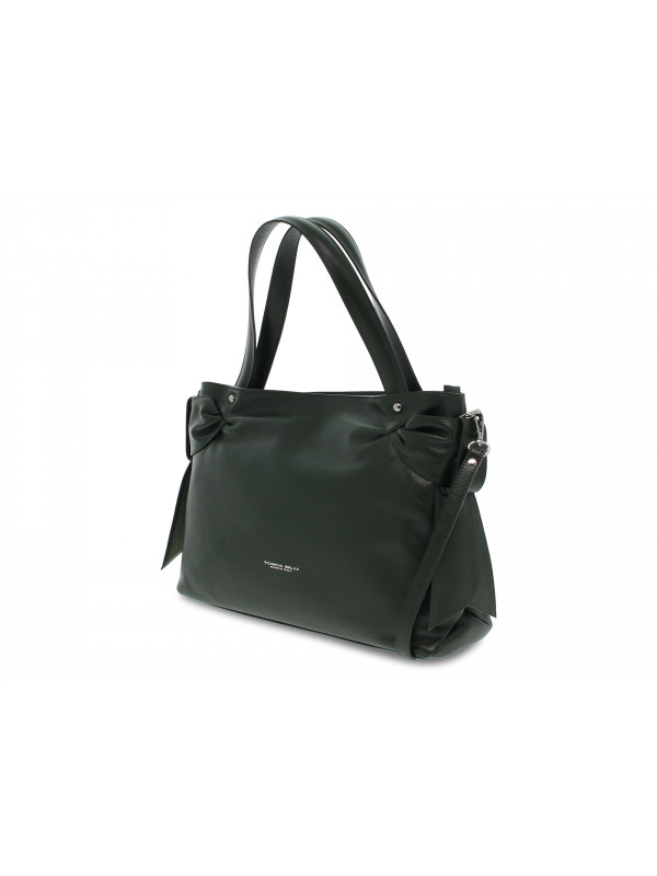 Bolso shopper Tosca Blu de piel, color verde, Modelo: BORSA GRANDE SOTTOBOSCO con botón con cerniera con accessorio ornamental con lazo decorativo con doble banda con decoración con logo.