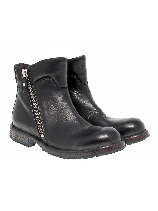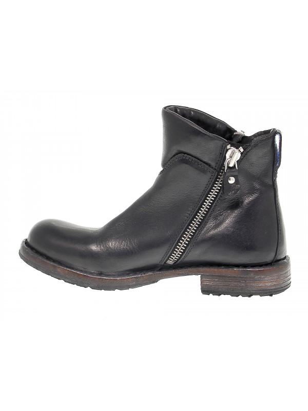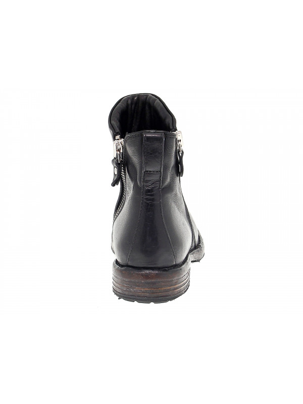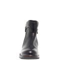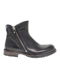 Botin tobillero en piel, color negro con zip lateral, suela de cuero y goma.
