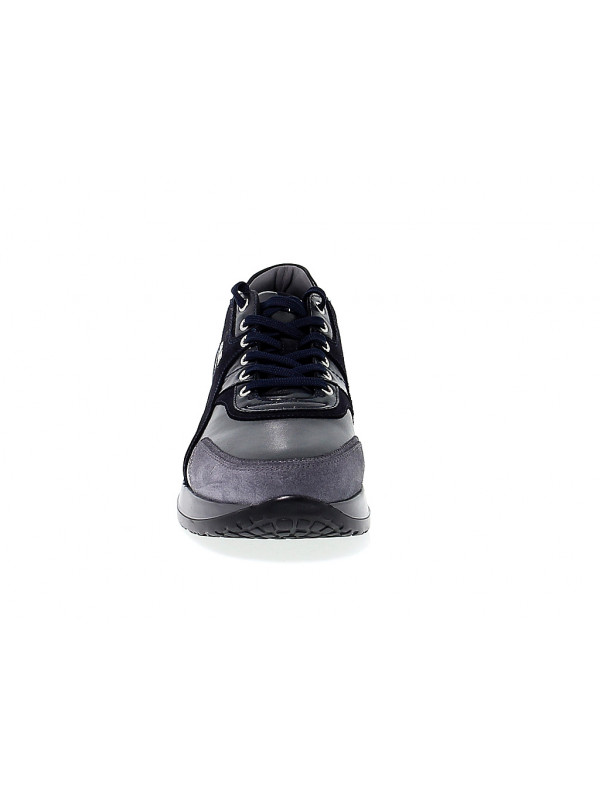 Baskets en peau et daim, couleur navy avec logo, semelle en caoutchouc.