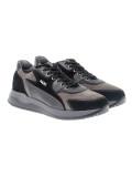 Baskets en daim et peau, couleur noir avec lacets, semelle en caoutchouc.