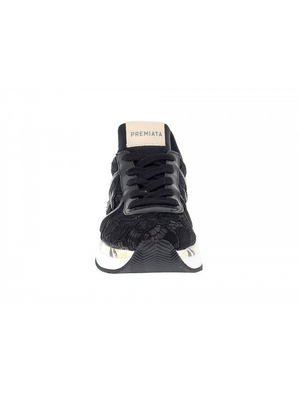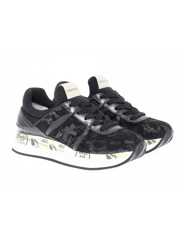 Baskets en peau et peindre, couleur noir modèle: LIZ avec dentelle avec logo, semelle en caoutchouc.