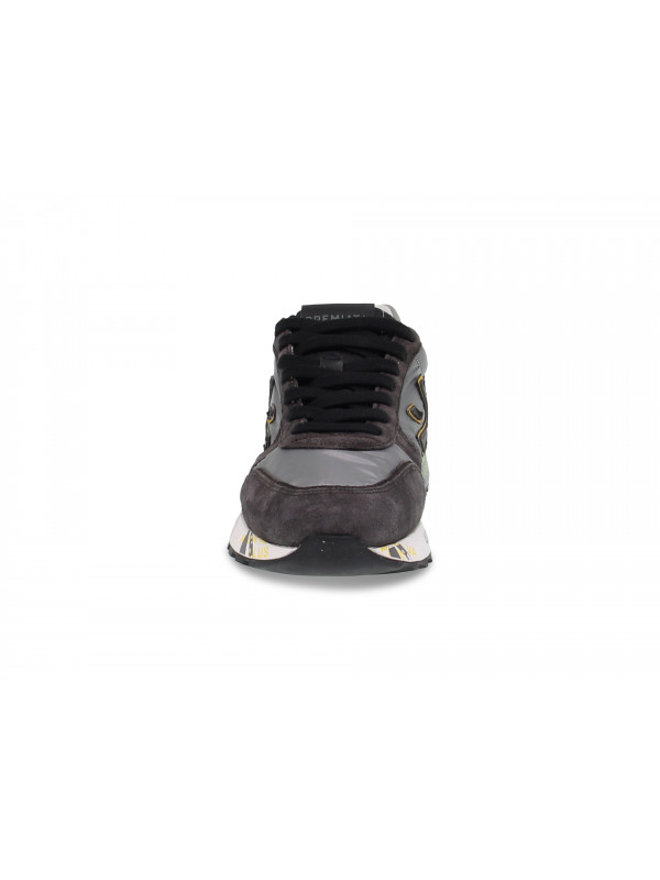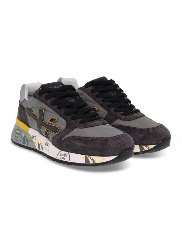 Sneakers Premiata MICK in camoscio e nylon grigio chiaro e senape